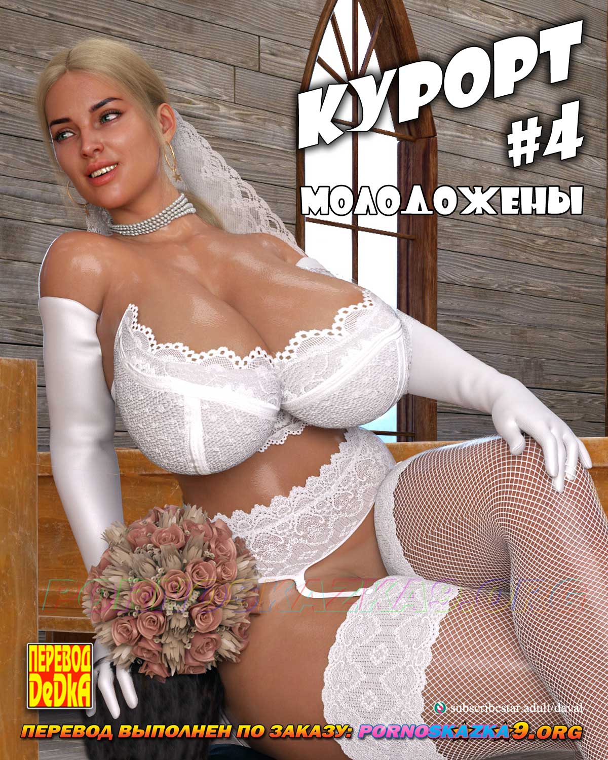 Порно комикс «Курорт. Часть 4.» В этой части комикса вы можете ознакомиться с неведомым ранее обрядом группового сочетания брачными узами, сопровождающимся групповым сексом с участием новобрачных…